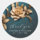 Express votre gratitude dans le style avec ces Stickers de Merci Mariage de la 'Collection Théâtrale Reverie'. Orné d'arrière - plans enchanteurs (bleu, violet royal, vert, brun rouille, noir fusain et rouge de théâtre), chaque autocollant est décoré d'un rose métallique en cuivre doré et d'un feuillage, montrant l'élégance de votre thème mariage. Personnalisés avec le nom et la date de la mariée et du marié, ces autocollants ajoutent une touche finale à vos notes de remerciement sincères.