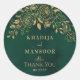 Autocollant Rond Classique de Remerciement de Mariage à Motif Floral Doré sur Fond Vert Émeraude