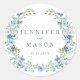 Améliorez vos faveurs de mariage printemps/été avec ces stickers bohème élégants et romantiques, avec une captivante couronne florale bleu aquarelle qui peut être personnalisée avec les noms de la mariée et du marié.
