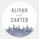 Parfait pour sceller les enveloppes, les faveurs de fête, et plus encore, cet élégant autocollant rond présente un bel arrière - plan de pins d'aquarelle abstraits en bleu poussiéreux.