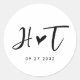 Simple Brossé Carrosserie Monogramme Mariage Classic Round Sticker présente un coeur simple mais captivant avec monogramme, symbolisant le lien pur et incassable entre le couple.