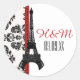 Sticker Rond MARIAGE Tour Eiffel monogramme rouge