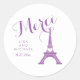 Sticker Rond Mariage Tour Eiffel Paris violet et blanc Merci