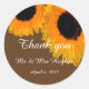 Mariage de tournesol merci les autocollants. Une belle image de tournesol jaune vif sur un arrière - plan marron personnalisé avec des initiales pour compléter un mariage d'été unique