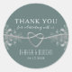 Autocollant de remerciement de mariage vert sauge profond élégant vintage avec un cœur de corde argentée simple et dentelle florale dorée.