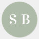 Sticker Rond Mariage vert simple feuille claire monogramme