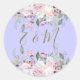 Sticker Rond Mariage violet Floral Monogramme Or été