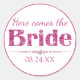 Ces autocollants glamour présentent un thème enterrement de vie de jeune fille, future mariée. La phrase "Voici la mariée" est imprimée au centre, avec "Mariée" dans une police rose pailleté. Une bande luxueuse de diamants est imprimée en dessous. Une date de mariage exemple est imprimée en bas, que vous pouvez personnaliser pour inclure votre propre date ou autre texte personnalisé.