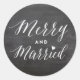 Sticker Rond Mariés et joyeux Mariage férié sur tableau noir