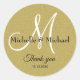 Sticker Rond Mariés Monogramme Paillettes Or Remerciement