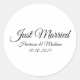 Mariés, noms personnalisés écriture noire blanche Autocollant Rond Classique.