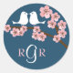 Sticker Rond Marine Bleu et rose cerisier Fleur Printemps Maria