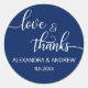 Sticker Rond Marine Bleu Script Mariage Amour & Merci