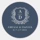 Sticker Rond Marine Blue Crest Moderne Monogramme Mariage
