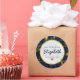 Un autocollant de cuisine avec un arrière - plan élégant et élégant de marbre bleu marine et or. Couché sur le dessus est un cercle avec une fausse bordure en feuille d'or avec votre texte personnalisé à l'intérieur. Le texte dit "Fait maison avec amour" avec un petit coeur rose.
