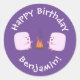 Sticker Rond Marshmallows mignons roses par dessin animé sur le
