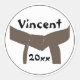 Personnalisez l'autocollant de ceinture Brown des arts martiaux avec le nom de votre artiste martiale et l'année de leur réalisation. Cet autocollant personnalisé d'arts martiaux présente une photo peinte numériquement d'une ceinture de bracelet d'arts martiaux attachée dans un noeud.