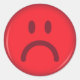Autocollants ronds personnalisés avec un visage rouge et malheureux. Un vert, heureux dans le même style est également disponible.
