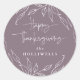 Conception mise à jour. Coordonner avec mes invitations de Thanksgiving - ou utiliser les autocollants/enveloppes scellés par eux-mêmes. Les feuilles dessinés à la main forment une frontière délicate pour le message "Bon thanksgiving" et votre texte personnalisé. Ce design autocollant est disponible en d'autres couleurs et dans une version avec du texte entièrement personnalisable.
