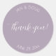 Décorez votre emballage de faveur de mariage avec ces autocollants ronds qui ont une couleur mauve avec un script blanc et stylisé. Personnalisez vos autocollants en remplaçant les noms des mariés et des mariés et la date du mariage par les vôtres. Sélectionnez votre taille d'autocollant.