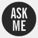 Me demander | Black Volunteer Badge avec le titre "Ask Me" en blanc sans serif style de police sur arrière - plan noir.