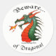 La peinture de Linda Baysinger Peck d'un dragon vert, avec le texte "Attention aux dragons !" Pour ceux qui aiment les faires de la Renaissance, les faires médiévales, les imaginaires et les bêtes mythiques. Image © Linda Baysinger Peck Tous droits réservés