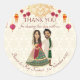 Mehndi & sangeet manadala et joli couple indien autocollants de remerciement pour mariage indien.