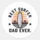 Un cadeau pour votre père surfeur avec ce design rétro coucher de soleil d'une planche de surf vintage dans une scène tropicale minimaliste qui dit, "Meilleur papa surfeur jamais"
