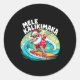 Sticker Rond Mele Kalikimaka Hawaiian Christmas Santa Surfing B