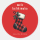 Sticker Rond Mele Kalikimaka Red & Black Plaid Stocking Holiday