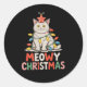 Sticker Rond MeowChristmas Funny Cute Chat Noël Lumières Fête