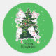 Meowy Christmas | Funny Cat Illustration Classic Round Sticker . "Meowy Christmas." Fun and joyful design for cat owners and lovers!.