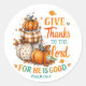 Design paisible et coloré avec une belle scène automne/automne avec un citrouille décoratif empilé et des feuilles automne. Le texte inspirant et coloré dit : "Remerciez le Seigneur pour son bien. Psaume 136:1". Ce design est disponible sur une grande variété de produits.
