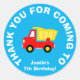 Le Merci personnalisé pour la fête d'anniversaire à venir favorise les autocollants. Conception amusante d'un véhicule de camion de jouets rouges pour petits hommes. Thème de construction merci étiquettes avec la couleur arrière - plan personnalisable. c'est-à-dire jaune doux, gris, violet, bleu clair ou rose pastel girly. Convient aux garçons et aux filles. Design de typographie adorable avec camion à benne pour Anniversaire Merci faveurs. Aussi pratique comme baby shower enveloppes scellés / scellants pour dire merci d'être venu ou merci de partager notre journée spéciale!