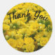 Cette belle photo capture le brillant jaune d'une collection de fleurs. Ces petites et belles fleurs remplissent l'autocollant rond entier. Le "Merci" peut être customisé rapidement et facilement pour refléter tout ce que vous voulez dire.