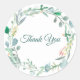 Sticker Rond Merci Aquarelle Florale Et Verdure Couronne