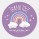 Ce baby shower mignon et magique pour filles violet faveur autocollant design dispose d'un arc en ciel et étoiles, et peut être personnalisé avec le nom de votre enfant et la date de votre fête d'anniversaire. Les stickers "merci" fantaisie parfait pour votre fête anniversaire de enfant.