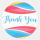Sticker Rond Merci bleu rétro Abstrait Rainbow Wave rouge