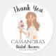 Dites merci à vos amis et à votre famille pour leur présence à votre célébration avec une terre mère boho calme et sereine aux longs cheveux bruns offrant un bouquet de coeurs en remerciement d'être venus célébrer avec nous. Le nom, l'événement et la date peuvent être personnalisés pour une belle conception d'autocollant personnalisé et constituent un ajout attentionné et personnalisé à tout décor de table pour votre prochaine baby shower, fête d'anniversaire, douche de mariée ou réunion.