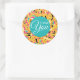 Une façon joyeuse d'ajouter un autocollant de remerciement à votre correspondance ou vos cadeaux, toute utilisation personnelle ou d'affaires va égayer avec ce jaune doré brillant et joyeux, orange, rose chaud, bleu turquoise et noir avec des accents blancs dans tourbillons jouants merci autocollant.