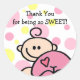 Sticker Rond Merci chatouillée fille rose