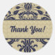 Sticker Rond Merci d'affaires bleu et ruban Damask