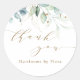 Cet autocollant de remerciement présente peint aquarelle eucalyptus, feuilles botaniques vert et or parties scintillant avec script or.