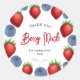 Sticker rond classique Merci d'anniversaire de fraises Le Sticker rond classique de d'anniversaire de fraises de fraises de Merci est un sticker charmant et charmant conçu pour exprimer la gratitude après une fête d'anniversaire. Avec une forme ronde classique, cet autocollant présente une adorable illustration d'une fraise et d'un bleuet