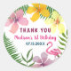 Coloré, lumineux, adorable, tropical, fleurs d'aquarelle, feuilles verts et flamants roses. Un autocollant de Merci d'anniversaire tendance et unique, avec monogramme personnalisé de la petite fille. Un choix parfait pour les anniversaires d'été.