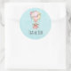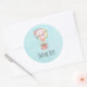 stickers Merci au design adorable avec illustration aquarelle. Une montgolfière ornée de jolies fleurs rouges et roses. Un mignon petit ours blanc est assis dans le panier. Arrière - plan bleu clair.