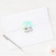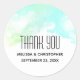 Mariage merci autocollants avec une bordure abstraite le long du dessus avec des couleurs tourbillonnant vertes et bleues. Un design doux et estival. Une texture de papier aquarelle claire derrière l'image.