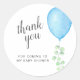 L'autocollant en Merci de Baby shower de ce garçon est décoré d'un ballon bleu aquarelle et d'eucalyptus vert. Facile à personnaliser. Utilisez l'outil de conception pour modifier la taille, le style ou la couleur du texte. Parce que nous créons notre oeuvre, vous ne trouverez pas cette image exacte d'autres designers. Aquarelle originale © Michele Davies.