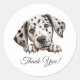 Envoyez un grand merci à vous avec cet emblématique autocollant de Merci dalmate. Doté de la belle robe noire et blanche de cette race, c’est un grand cadeau pour tout amoureux des chiens.