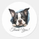 Cet autocollant Merci Boston Terrier est parfait pour les amoureux de les chiens qui admirent la nature aimable et ludique de cette race. Montrez votre appréciation avec cet autocollant adorable et personnel pour tout cadeau ou carte de remerciement.